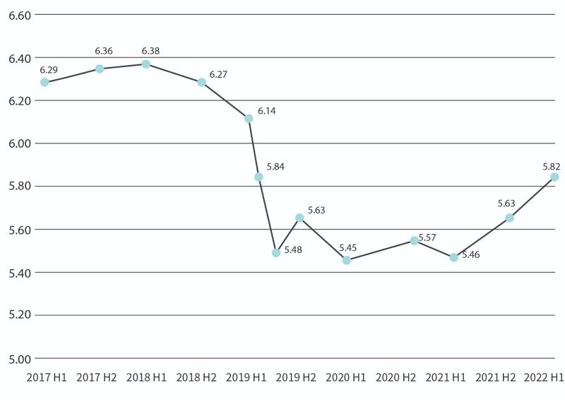 | 10 | 2022年8月 August 2022 | 5.82 |